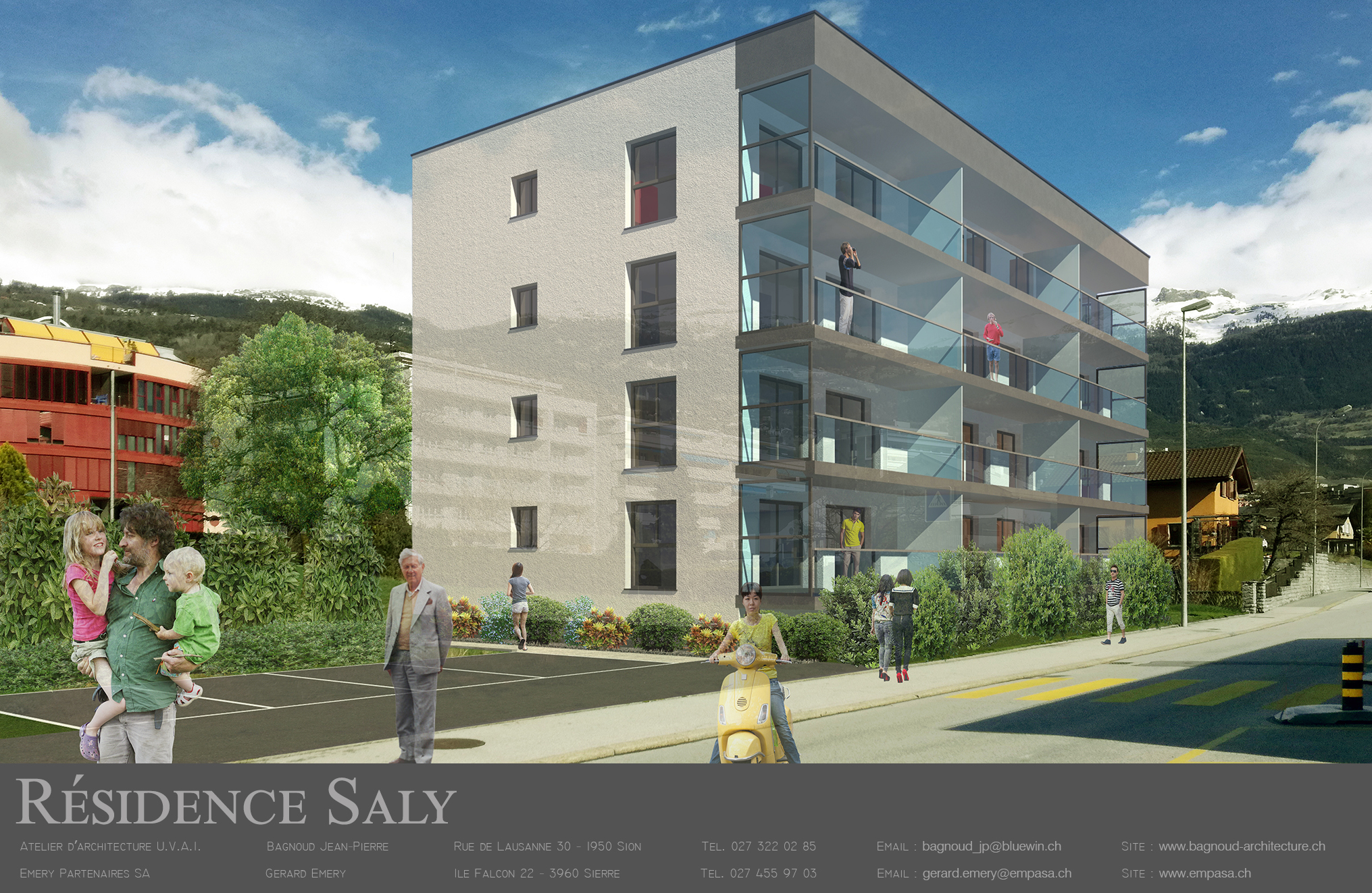 Construit sur une parcelle de 1’464 m2, situation: plein Sud, ensoleillée, vue, rue du stade, à 5 minutes à pieds du centre de Sierre.