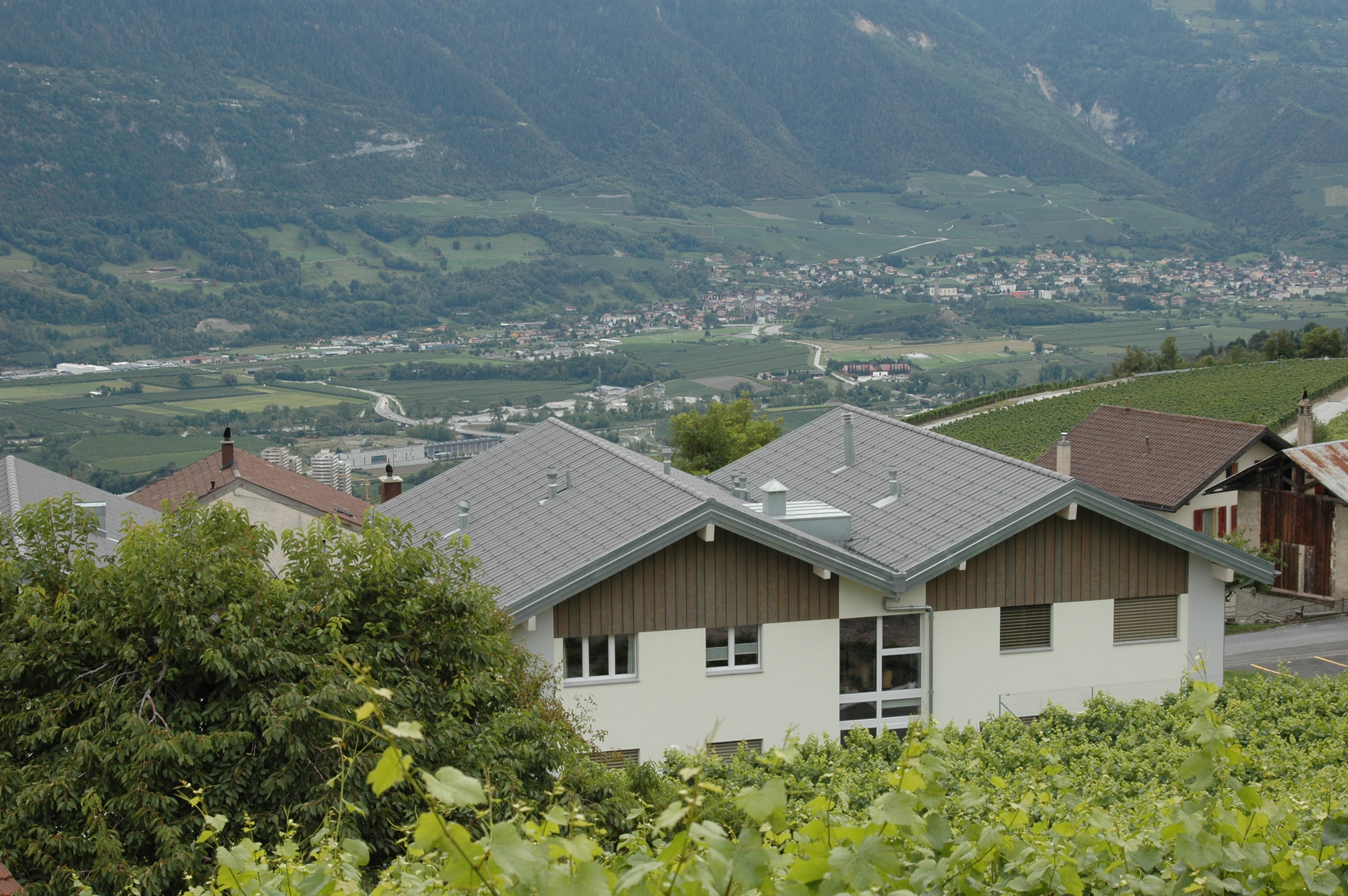 Dans un site magnifique avec vue imprenable sur la vallée du Rhône et les Alpes. Situation calme à 3 minutes du finiculaire, 10 minutes de Sierre et Crans-Montana.